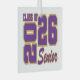 This glass ornament is shown in a square size with a fun print which you can personalise to your class colours. Shown in white, royal purple and gold. Customise this item with this template or buy as shown.