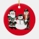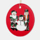 Christmas ornament, decoration, Holidays. This ceramic ornament will make a great addition to your Holiday decor, featuring a camouflage nutcracker, snowman, and Santa Claus.