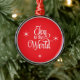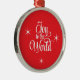 This premium metal ornament is shown in red and white with a stars Joy to the World print.