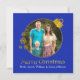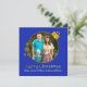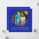 Stylish flat style square Christmas greeting card done in royal blue, with a round photo area decorated with gold tone accents to look like a tree ornament. Gold tone graphic text reads Merry Christmas. Personalise the white text to read what you want and replace the photograph with your own picture, for a festive and elegant way to send your holiday greetings. Matching products are available.