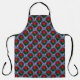 A pretty red and green bauble ornament against a blue stained glass style pattern decorates this seasonal apron. AI-generated by IveyCottage.