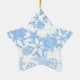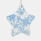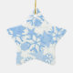 Christmas Ornament shown in a star shape with a white background with a festive holiday blue snowflakes print.