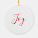 This ceramic Christmas ornament is shown here with a holiday snowman print.