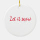 This ceramic Christmas ornament is shown here with a holiday snowman print.