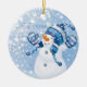 This ceramic Christmas ornament is shown here with a festive holiday snowman print.