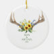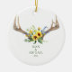 Sunflowers on Antlers Christmas Ornament. Names and YEAR. Front and Back.