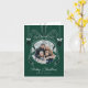 Spread holiday cheer with this festive holiday greeting card featuring a hand-drawn bow that crowns your favourite photo in a circular frame - creating the look of a festive Christmas ornament. The elegant green and white holiday card includes 'Merry Christmas' in a handwritten script font and your custom family name on the front. On the inside, there is space to add an additional photo on the left as well as a custom message on the right.