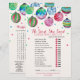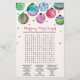 This christmas ornaments "he said she said" game is perfect for a bridal shower in December. The front of the game card features "he said she said" which is a fun quiz about the bride and groom. The back of the card features a word find with wedding related words and phrases. The design features red curly script text with ornaments dangling at the top of the game card, and colourful red green and blue confetti falling down towards the text. Personalise the game card with the name of the bride and the bridal shower date.