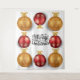 Bring the spirit of Christmas to your home or office with this beautiful three dimensional vector graphic of faux gold star and red and gold snowflake infused Christmas tree ornament balls. They appear to be popping right out of the backdrop and frame the decorative typography lettering that reads "Merry Christmas" in black. These are ideal for your business and home festive holiday celebrations.