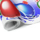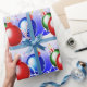 This image portrays Christmas balls in red, blue and green. Ribbons and stars in white, blue and red are seen throughout. A blue backround was added. A glitter was added to this design. This image was tiled. This Christmas wrapping paper is available in assorted styles and sizes.