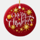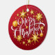 Beautiful Christmas round Ornament featuring golden sparkling stars, Christmas ornaments and Merry Christmas written in white typography on red background give it a festive look. Perfect holiday gift for family or friends.