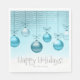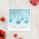 This pretty paper napkin design has a pattern of hanging Christmas ornaments in shades of turquoise blue. The background is a subtle gradient pattern of stylised Christmas trees. Search ID251 to see other colour options and additional products with this design.