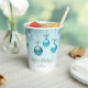 This pretty paper cup design has a pattern of hanging Christmas ornaments in shades of turquoise blue. The background is a subtle gradient pattern of stylised Christmas trees. Search ID251 to see other colour options and additional products with this design.