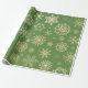 Christmas Ornate Gold Snowflake Pattern Wrapping Paper. This design features soft gold snowflakes pattern on green background. Perfect for wrapping holiday gifts.