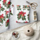 This holiday design features a festive pattern of gold bell wiith Holly berries and leaves set against a white background.