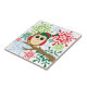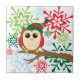 A cute little Christmas owl perches on a branch, surrounded by snowflakes.