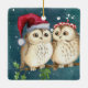 Christmas Owls on Branch at Night Ceramic Ornament