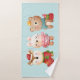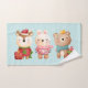 Towel set with a cute illustration featuring a bunny, a bear and a deer all dressed in festive gear. Adorable and whimsical.