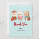 Thank you card with a cute illustration featuring a bunny, a bear and a deer all dressed in festive gear. Adorable and whimsical.