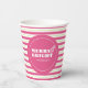 These pinkmas paper cups feature pink and green stripes with the words "Merry & Bright" set in bold typography. Use the template fields to add your custom text. A cute yet modern choice for your magenta Christmas party supplies. To see the matching theme visit www.zazzle.com/dotellabelle