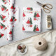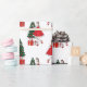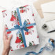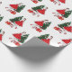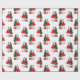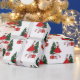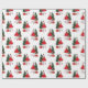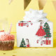 Vintage Christmas pattern with a girl in a red Christmas dress and tree with Christmas presents.