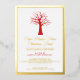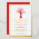 Simple red bare winter tree with a golden coloured partridge bird holiday Christmas graphic invitation. Customise with your own event. Graphic art and design by Sarah Trett for www.mylittleeden.com