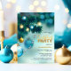 Personalised Modern Christmas Party invitations in blue, gold, green colours. Background in twinkle lights and baubles with pine branch. Editable template - simply add your text. All text can be changed font, colour and size. Perfect for home party, office party, holiday dinner party bash or any other winter season occasion.