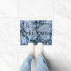 Christmas Party Blue Leaves Snow Holidays Winter Doormat. Unique, beautiful, stylish design. Easy to be personalised. Font style, size and colours can be changed. Matching items are available.