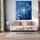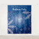 A winter tapestry for a fun holiday season and Christmas parties, dinners. A blue background with large white snow flakes, crystals. Personalise and add your family name. The text: Christmas Party is written in white with a modern hand lettered style script. Can be used as a welcome sign, party wall decoration or as photo booth backdrop.