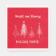 Christmas Party Bright and Shining Holiday Dinner Napkins designed with gold coloured text and elegant white Christmas Trees on a bold red background. The text includes: Bright and Shining, and Holiday Party. To change Holiday Party to Christmas Party, or your preferred text, simply replace the text within our easy template. Colours may be changed using our easy Colour Picker Tool.