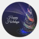 Christmas Party Colourful Tree Navy Blue Rustic Classic Round Sticker