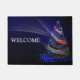 Christmas Party Colourful Tree Navy Blue Rustic Doormat. Unique, beautiful, stylish design. Easy to be personalised. Font style, size and colours can be changed. Matching items are available.