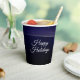 Christmas Party Colourful Tree Navy Blue Rustic Paper Cups. Unique, beautiful, stylish design. Easy to be personalised. Font style, size and colours can be changed. Matching items are available.