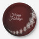 Christmas Party Crystal Snowflakes Red Rustic Paper Plates. Unique, beautiful, stylish design. Easy to be personalised. Font style, size and colours can be changed. Matching items are available.