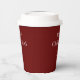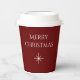 Festive Christmas party snowflake paper cup on a red background. With white typography lettering, you can customise with your own text. Great for your Christmas dinner or holiday party.