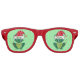 Fun holiday party sunglasses for Christmas company or friends and family gatherings. Cute Santa Claus Frogs on a green background. Great for a cool Santa to wear with his costume to parties.