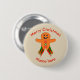 This button features a cute cartoon of a colourful gingerbread man. he has red and green buttons, a big smile on his face and red and green tassels around his legs ready for a Christmas party.