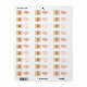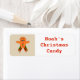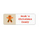 This sheet of sticky food labels features a cute cartoon of a colourful gingerbread man. he has red and green buttons, a big smile on his face and red and green tassels around his legs ready for a Christmas party. The text is customisable allowing you to use these labels also for homemade food and drinks for parties and feasts such as Christmas.