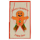 This awesome gift bag features a cute cartoon of a colourful gingerbread man. he has red and green buttons, a big smile on his face and red and green tassels around his legs ready for a Christmas party. There is customisable text on the front so you can personalise this bag however you want.