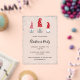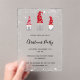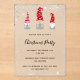 Frosted background, decorated with 3 Scandinavian style gnomes in red, white and grey. Faux silver glitter, sparkles. A party invitation perfect for a Christmas party with friends, family or coworkers. Personalise and add your party details. Black letters.