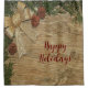 Christmas Party Golden Green Leaves Red Rustic Shower Curtain