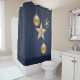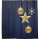 Christmas Party Golden Ornament Navy Blue Elegant Shower Curtain