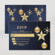 Christmas Party Golden Ornaments Navy Blue Elegant RSVP Card