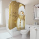 Christmas Party Golden Snowman Snowflakes Holidays Shower Curtain. Unique, beautiful, stylish design. Easy to be personalized. Font style, size and colors can be changed. Matching items are available.