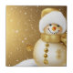 Christmas Party Golden Snowman Snowflakes Holidays Tile