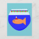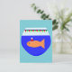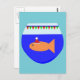 This postcard features a fun orange Christmas goldfish wearing a festive santa hat. The goldfish is swimming in the blue water of its goldfish bowl. The fish has decorated the top of the bowl with red and green bunting flags that spell out the message "Merry Fishmas". This fun seasonal fish is ready for a big Christmas party.