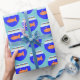 This awesome wrapping paper features a fun orange Christmas goldfish wearing a festive santa hat. The goldfish is swimming in the blue water of its goldfish bowl. The fish has decorated the top of the bowl with red and green bunting flags that spell out the message "Merry Fishmas". This fun seasonal fish is ready for a big Christmas party.
