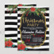 CHRISTMAS PARTY Invitation, Christmas Invitation, black white stripes, floral