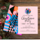 Christmas Party Modern Geometric Pattern Pink Invitation