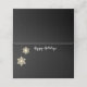 This folded name place card is shown with a black background colour with a festive gold crystal snowflakes graphic print.
